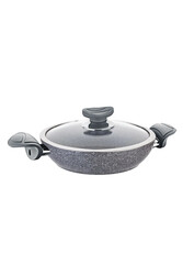 3214 - 2 Parça, Biogranit, Çerçeveli Kapaklı, 18x5 Cm - 1,0 Litre Sahan-Tava Gri Gövde, Gri Detay