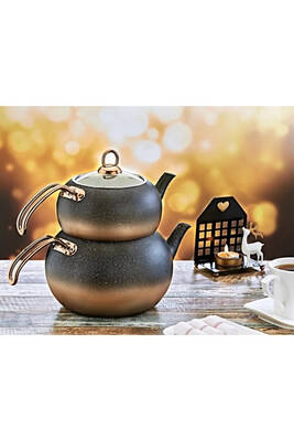 Granit 4 Parça Orta Boy Küre Çaydanlık Takımı Bakır 8210