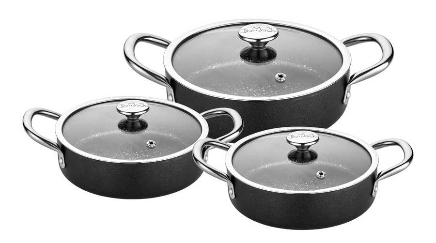 Oms Collection 6 Parça Biogranit MİNİ Tencere & Sahan Seti ( 18 - 20 - 22 Cm ) ( 3561 - Antrasit )