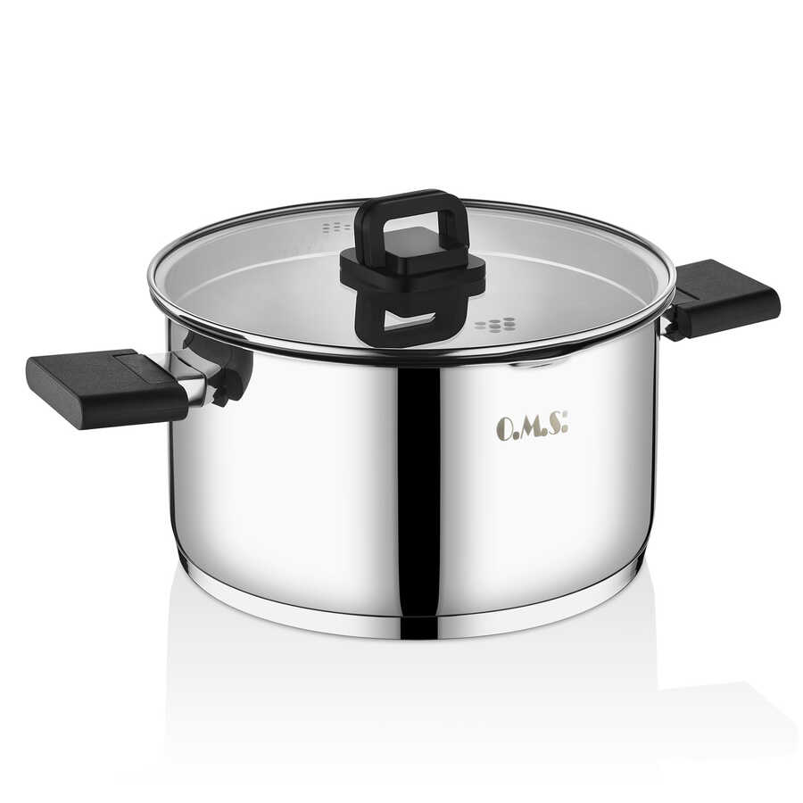 Oms Collection 8 Parça Katlanabilir Saplı Süzgeç Ağızlı İndüksiyon Taban Çelik Tencere Seti ( 1151 - Gümüş )