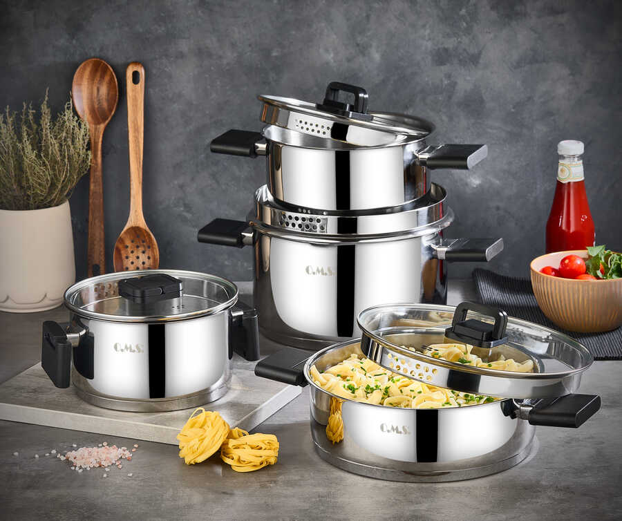 Oms Collection – 8 Parça Katlanabilir Saplı İndüksiyon Taban Çelik Tencere Seti (1151)