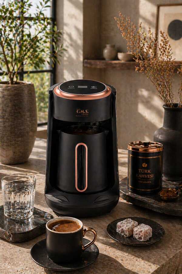 OMS COLLECTION – CAFETURA GURME OTOMATİK KAHVE MAKİNESİ (8800 – SİYAH)Geleneksel Türk Kahvesi Kültürünü Modern Teknoloji İle Buluşturan Cafetura, Soft Türk Kahvesi Ve Gurme Közde Kahve Modları Sayesinde Damak Zevkinize Uygun Farklı Lezzet Alternatifleri Sunar. Özel Pişirme Teknolojisi, Kahvenin Aromasını Koruyarak Her Fincanda Yoğun Koku, İdeal Kıvam Ve Bol Köpük Elde Etmenizi Sağlar.Akıllı Otomatik Pişirme Sistemi, Kahvenizi Taşırmadan Ve Yakmadan Kontrollü Şekilde Hazırlarken, Homojen Isı Dağılımı Sayesinde Her Fincanda Aynı Lezzeti Yakalarsınız. Tek Tuşla Çalışma Özelliği İle Pratik Kullanım Sunar; Günün Her Anında Zahmetsizce Kahvenizi Hazırlayabilirsiniz.4 Kişilik Kapasitesi İle Aile Kullanımı Ve Misafir Ağırlamalar İçin İdeal Olan Bu Makine, Aynı Anda Birden Fazla Fincanı Kıvamında Hazırlayarak Zamandan Tasarruf Ettirir.Şık Siyah Rengi Ve Modern Hatlara Sahip Tasarımıyla Mutfağınıza Prestij Katarken, Kompakt Yapısı Sayesinde Fazla Yer Kaplamaz. Hafif Ve Ergonomik Gövdesi, Kolay Taşınabilirlik Ve Rahat Kullanım Avantajı Sunar.Kolay Temizlenebilir Yapısı İle Hijyenik Kullanım Sağlayan Cafetura, Günlük Kahve Rutininizi Keyifli Bir Deneyime Dönüştürür.ÖNE ÇIKAN ÖZELLİKLER:- Soft Türk Kahvesi Ve Gurme Közde Kahve Pişirme Modları.